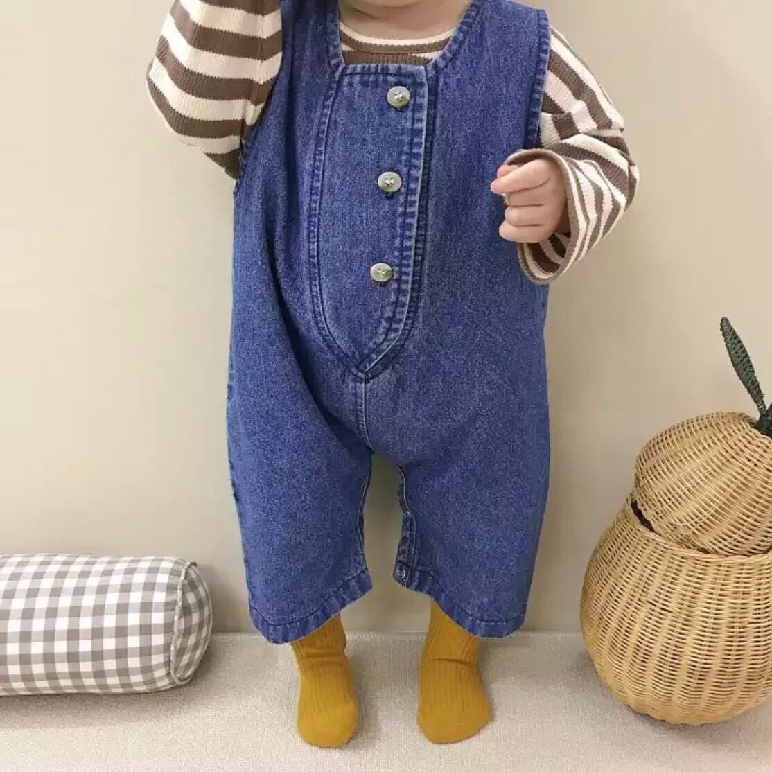 子供服 韓国子供服 海外子供服 ベビー服 赤ちゃん服 秋冬 秋服 冬服 ボトムス パンツ オーバーオール サスペンダー デニム ベージュ 淡色