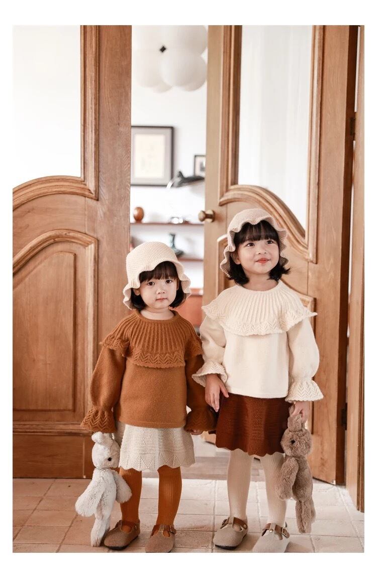 子供服 海外子供服 韓国子供服 秋 冬 秋服 冬服 シンプル ナチュラル 北欧 女の子 可愛い 秋服 冬服 ニット トップス トレーナー カジュアル ブラウン 白 レトロ 黄色 青 プルオーバー ラウンドネック デザインニット