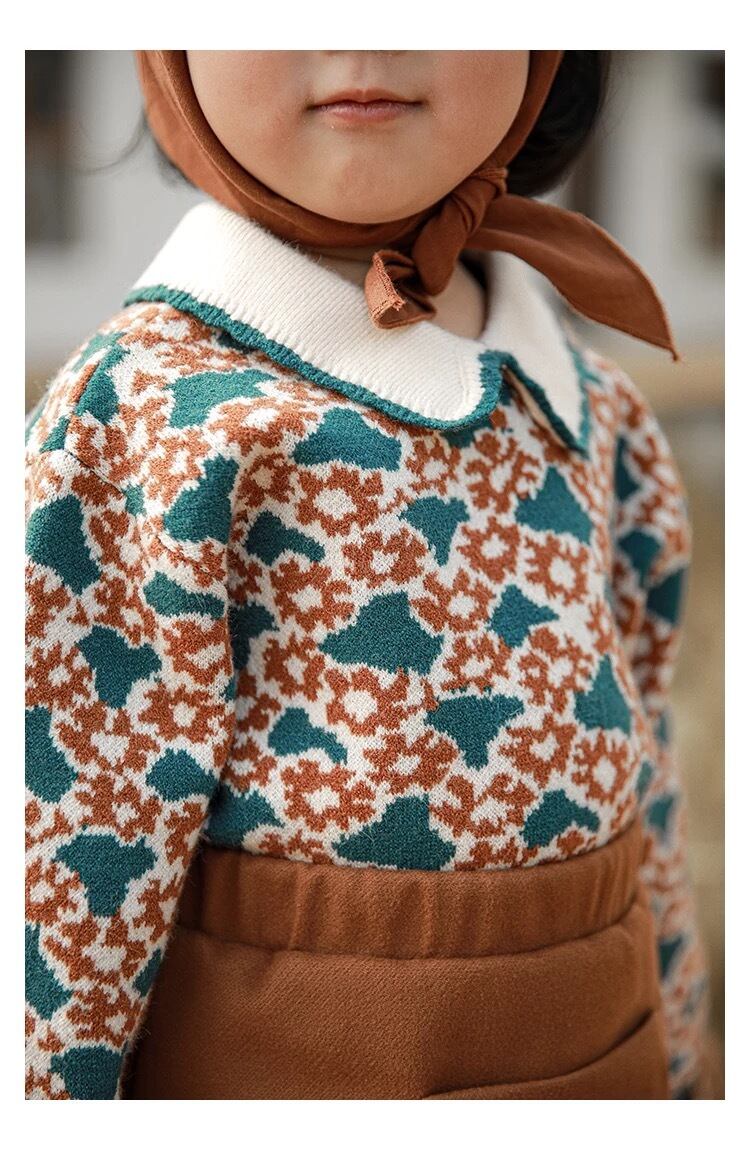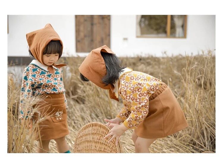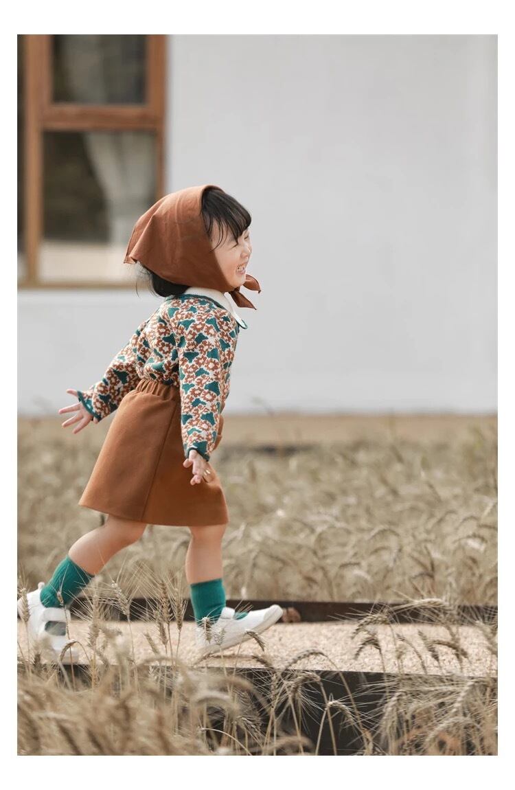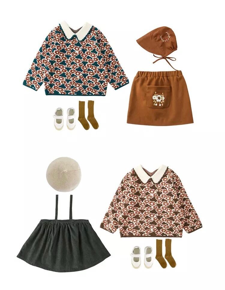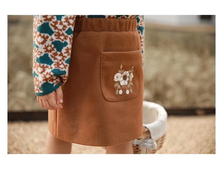子供服 海外子供服 韓国子供服 秋 冬 花柄 茶色 レトロ 女の子 可愛い 男の子 ボトムス パンツ 秋服 冬服 刺繍 スカート