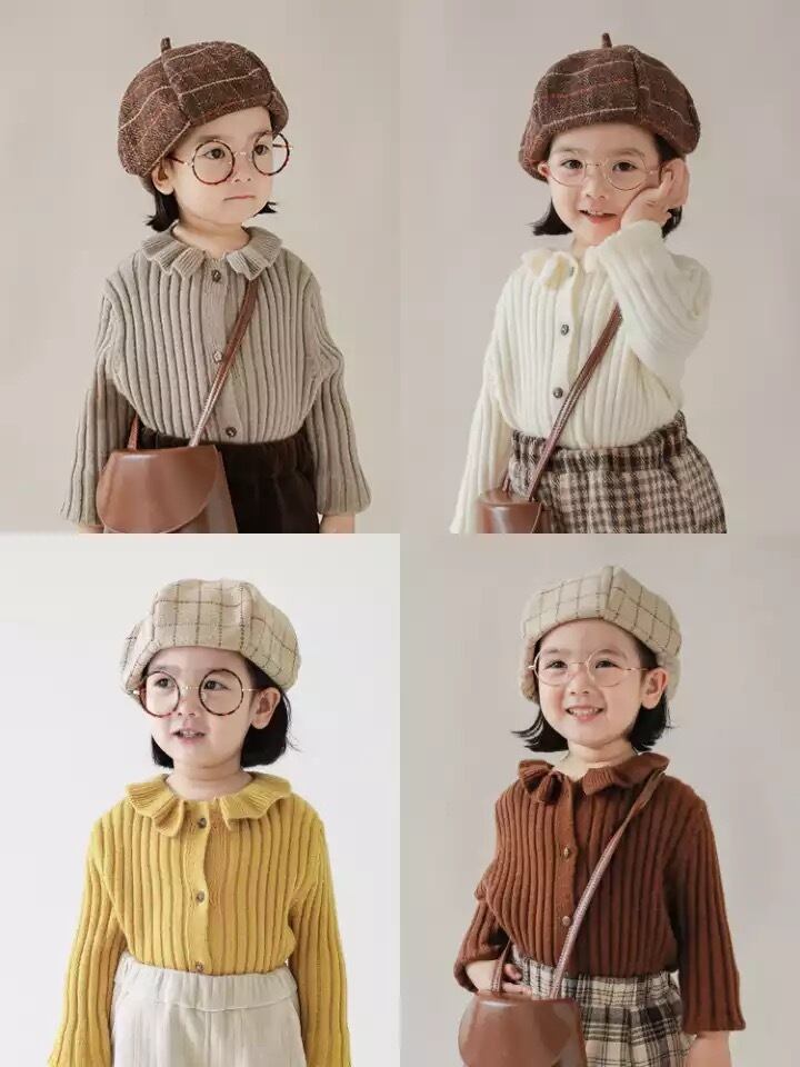 YOYO 子供服 海外子供服 韓国子供服 秋 冬 花柄 茶色 レトロ 女の子 可愛い 男の子 秋服 冬服 ニットカーディガン フリル 羽織 アウター カーディガン ニットトップス