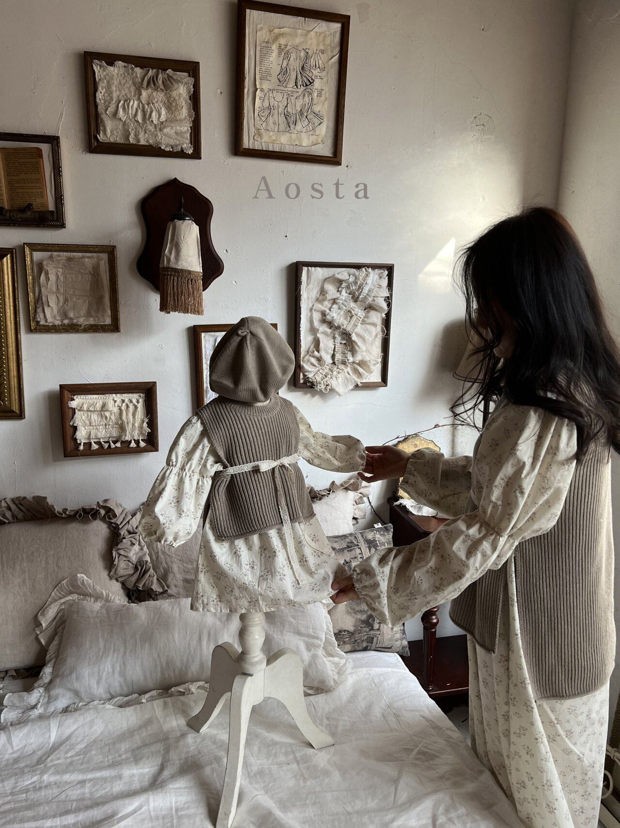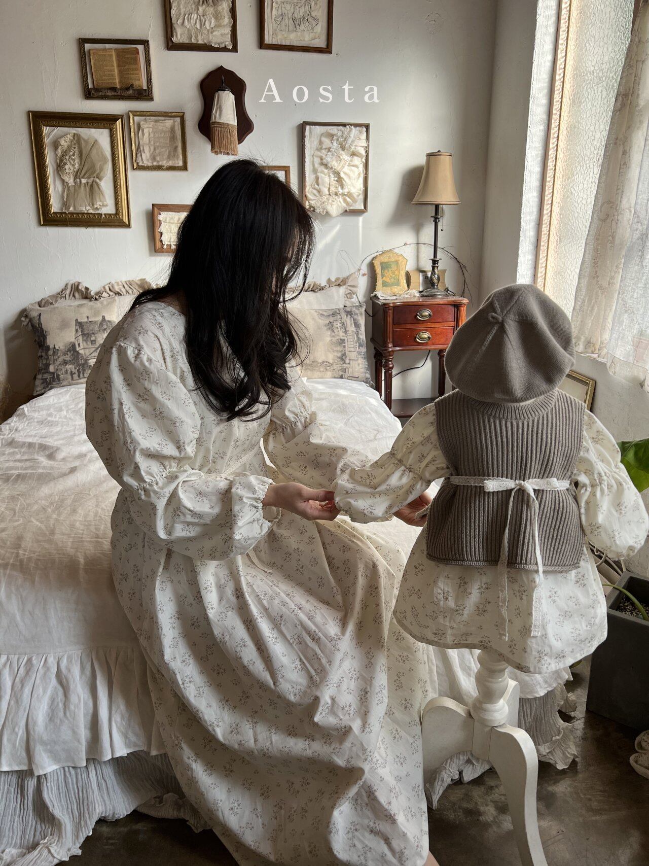 Aosta アオスタ 子供服 海外子供服 韓国子供服 冬 春 女の子 可愛い 秋服 冬服 春服 花柄 ドット ワンピース スカート レース リボン パフスリーブ ドレス 衣装 お出かけ着