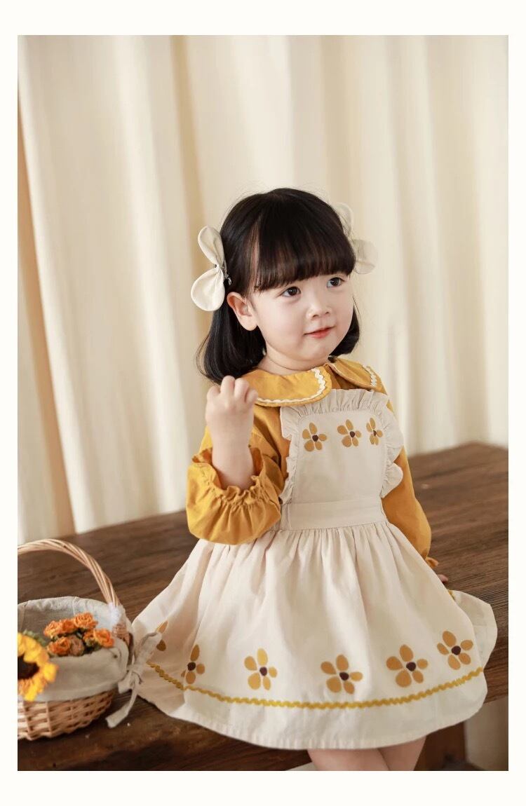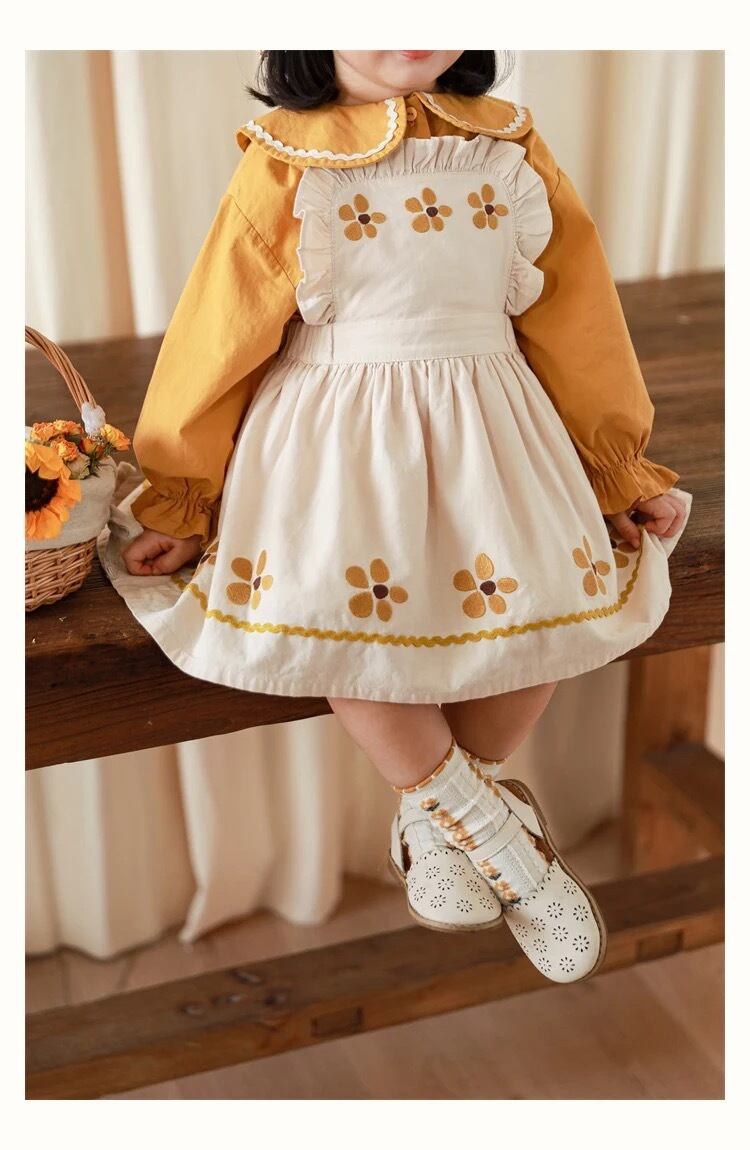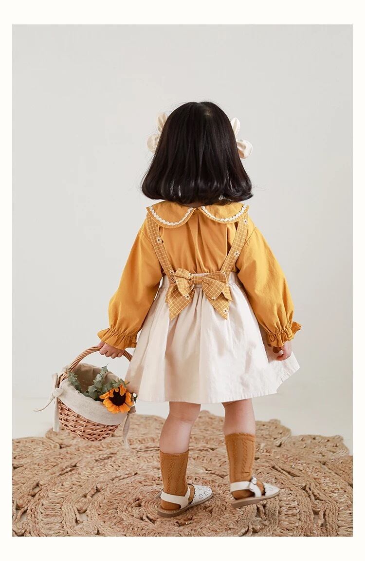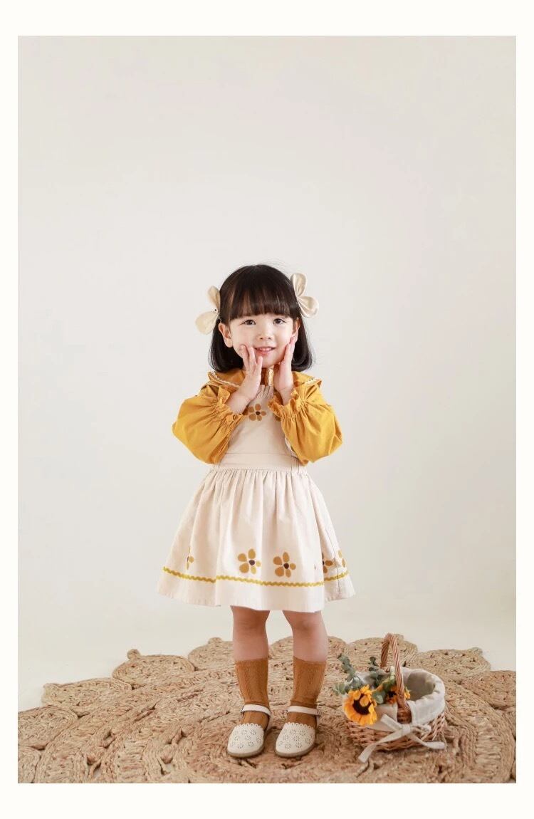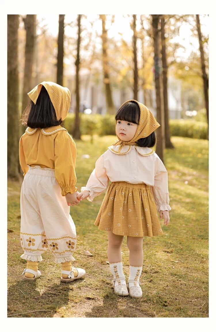 yoyo 子供服 海外子供服 韓国子供服 秋 冬 秋服 冬服 シンプル ナチュラル 北欧 女の子 可愛い カジュアル 白 レトロ 黄色 シャツ トップス ブラウス