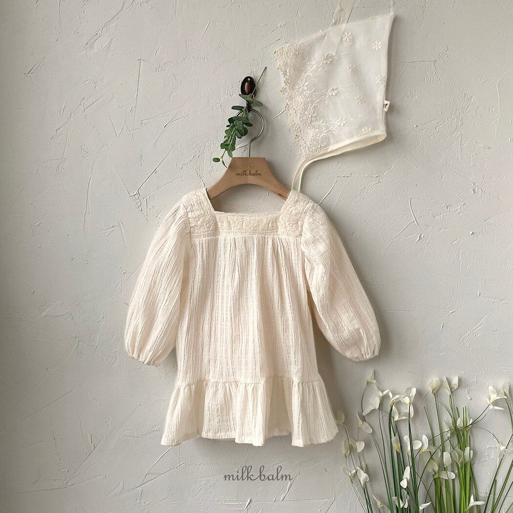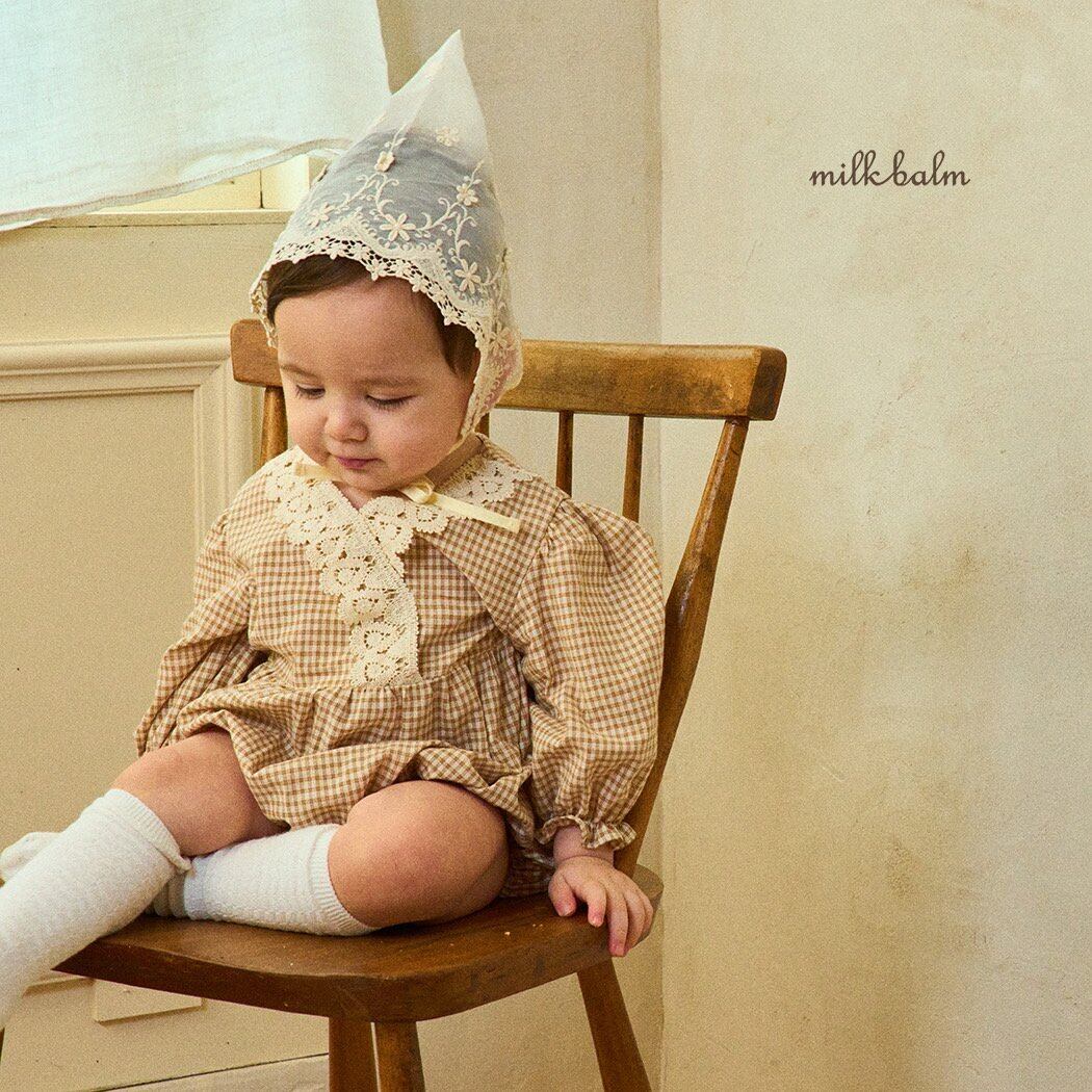 milkbalm 子供服 海外子供服 韓国子供服 秋 冬 秋服 冬服 春服 シンプル ナチュラル 北欧 女の子 可愛い カジュアル レトロ レース ボンネット 帽子 バブーシュカ 赤ちゃん服 ベビー服