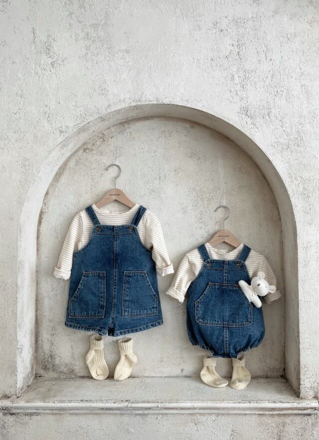 子供服 ベビー服 赤ちゃん服 韓国子供服 おそろい 双子コーデ 冬 秋 秋服 冬服 家族 姉妹 兄弟 海外子供服 新生児 リンクコーデ ロンパース お出かけ着 可愛い 女の子 男の子 デニムサロペット デニムオーバーオール 春服